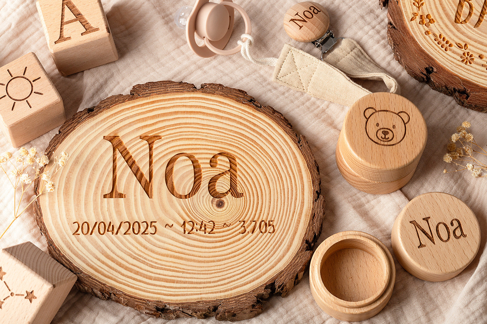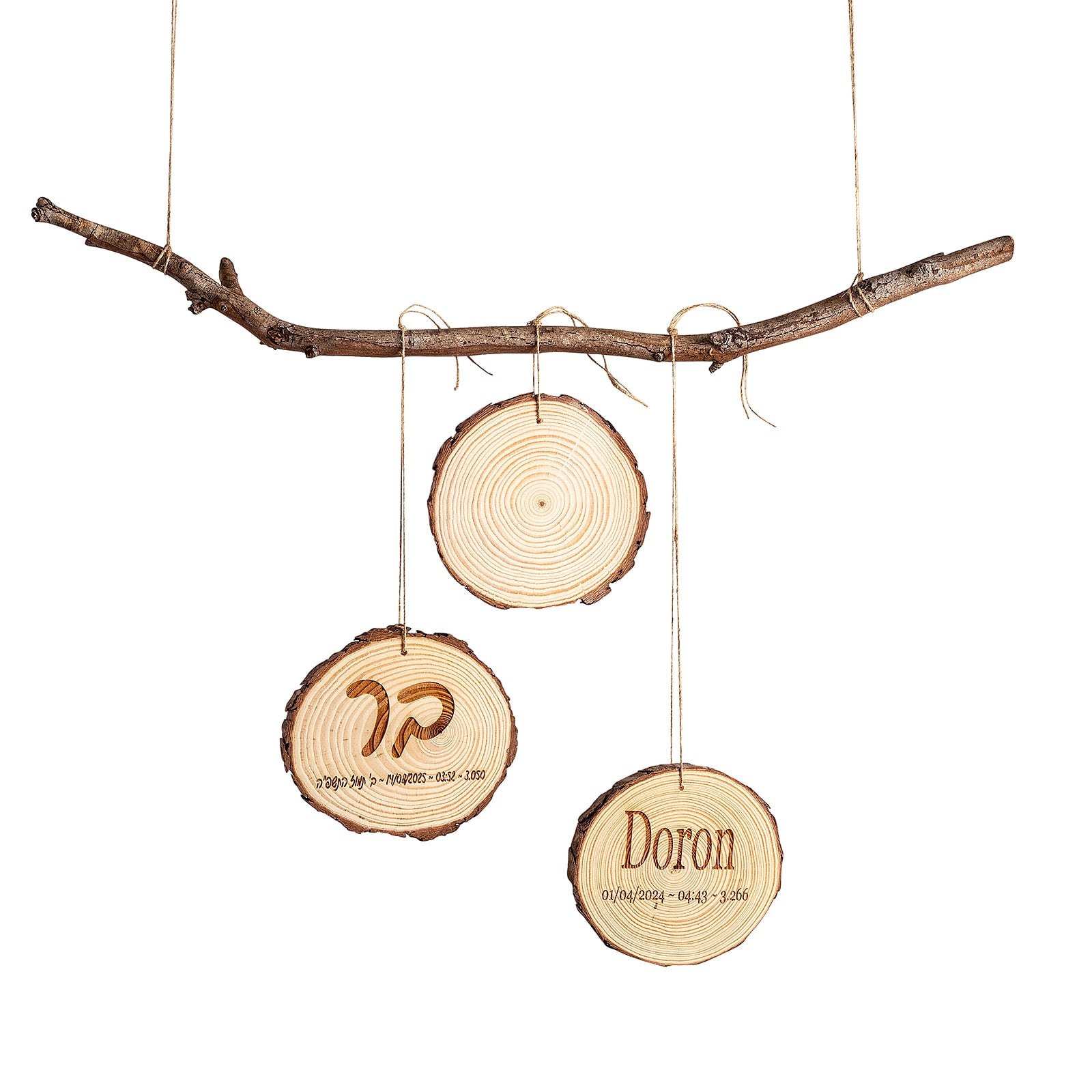 רגעים ראשונים שראויים להישמר – על פרוסת עץ טבעי ומלאת קסם. תעודת הלידה שלנו, בעיצוב אישי ועדין, עשויה עץ אורן טבעי בקוטר 15 ס"מ, עם חריטה אישית של שם הבייבי ופרטי הלידה המרגשים: תאריך, שעה, משקל וכל מה שתרצו לזכור.