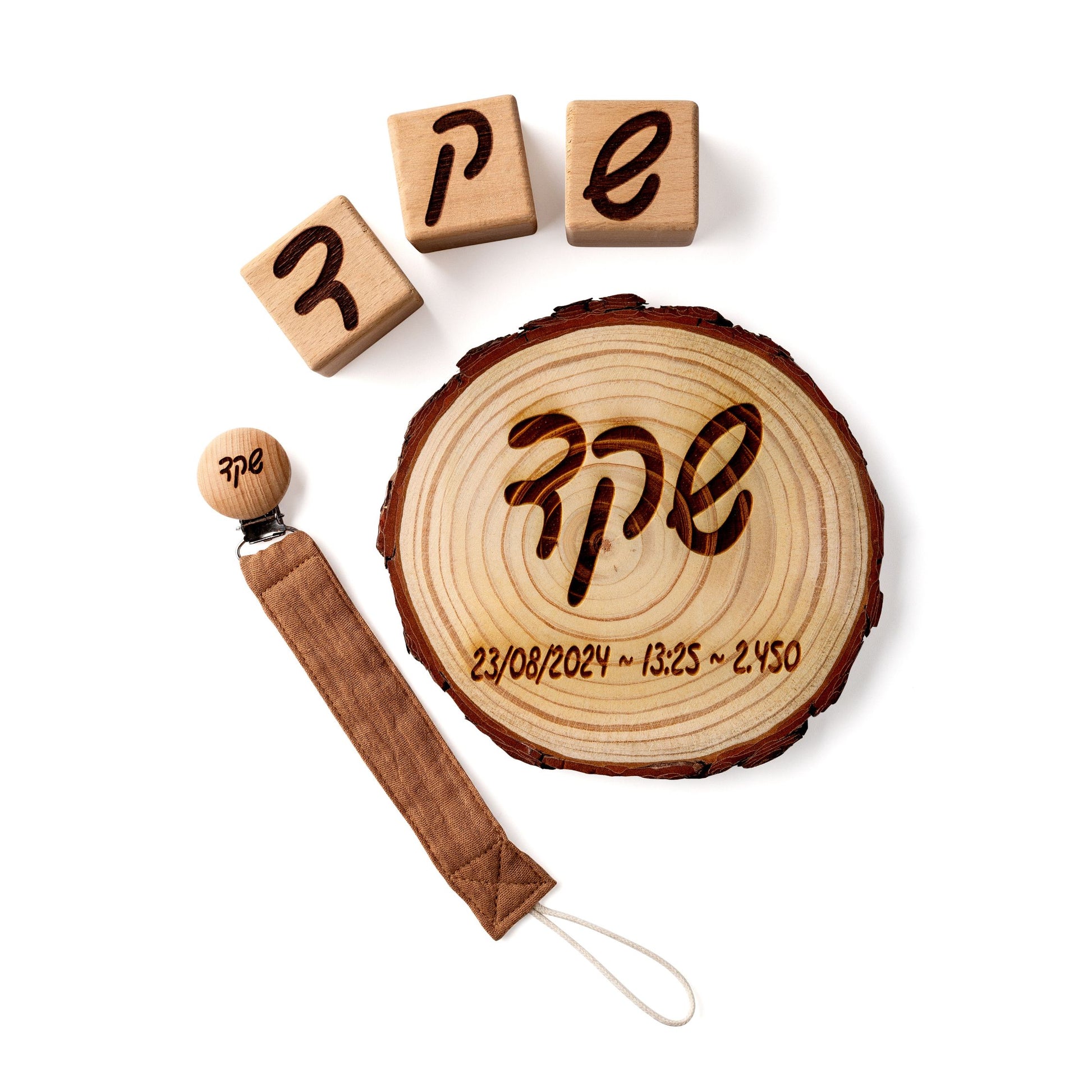 קוביות שם מעץ טבעי (כל קובייה בגודל 4 ס"מ) – תוספת עיצובית עם טאץ' אישי