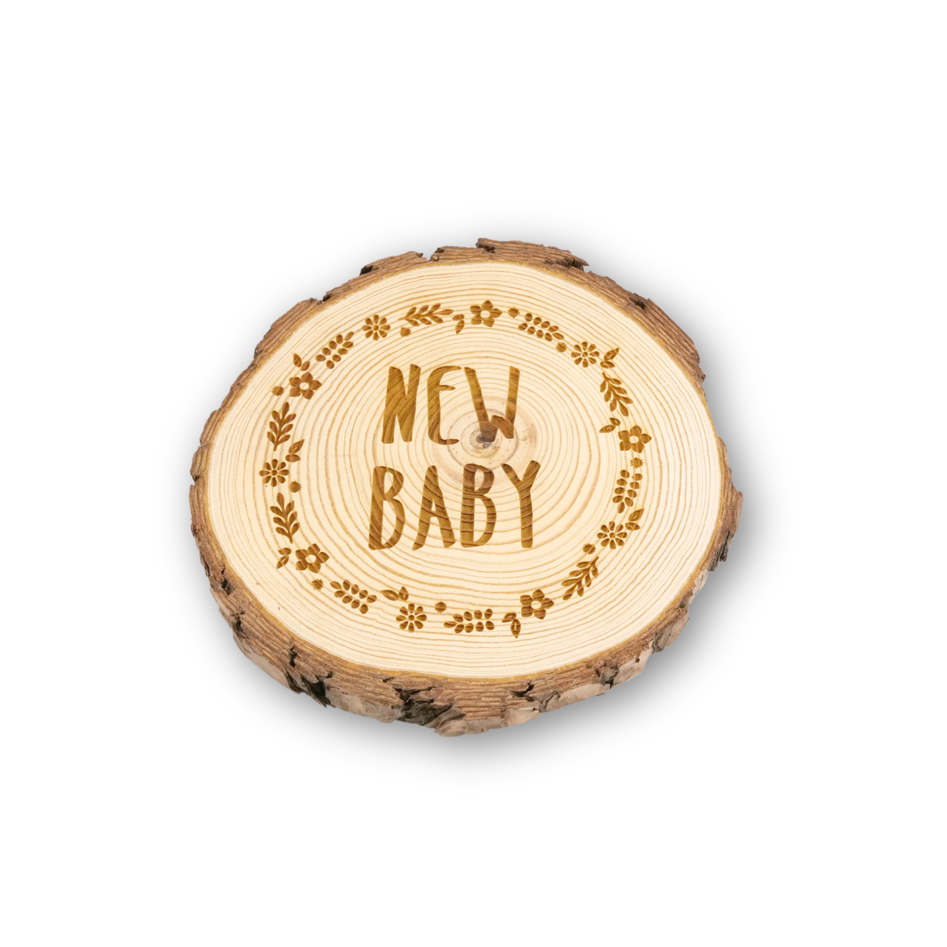 תעודת עץ אישית (15 ס"מ, עץ אורן טבעי) - עם המשפט “NEW BABY" חרוט ונשמר לנצח.