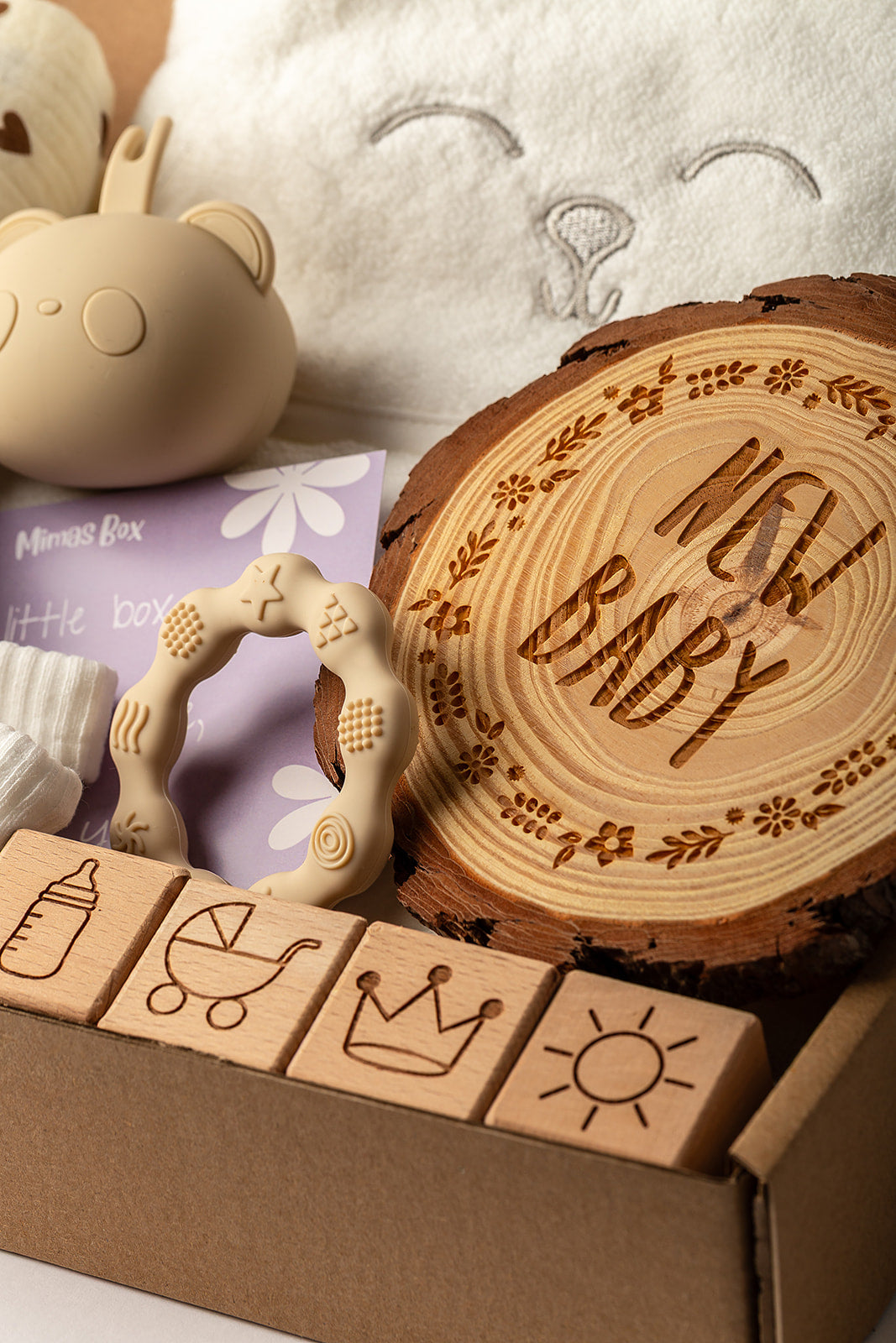 המארז הזה נוצר כדי להעניק מתנה מיוחדת גם כשעוד לא ידועים כל הפרטים הקטנים. בפנים תמצאו פריטים מפנקים ליום־יום, קוביות איורים ותעודת לידה בעבודת יד עם חריטה אישית - משפט קצר שמוסיף טאצ’ אישי ומלא רגש. המארז הוא יוניסקס, מתאים גם לבנים וגם לבנות, ומגיע מוכן מראש. כך שניתן לשלוח אותו במהירות ולהפתיע מתנה מעכשיו לעכשיו. מתנה שמעניקה להורים רגעים של רוך, חום וסטייל, ומתאימה לכל התחלה חדשה.